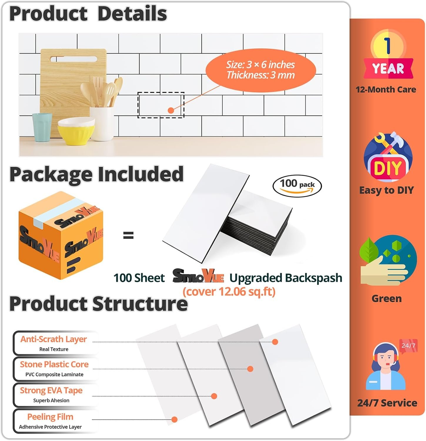 100 Pieces Peel and Stick Backsplash for Kitchen