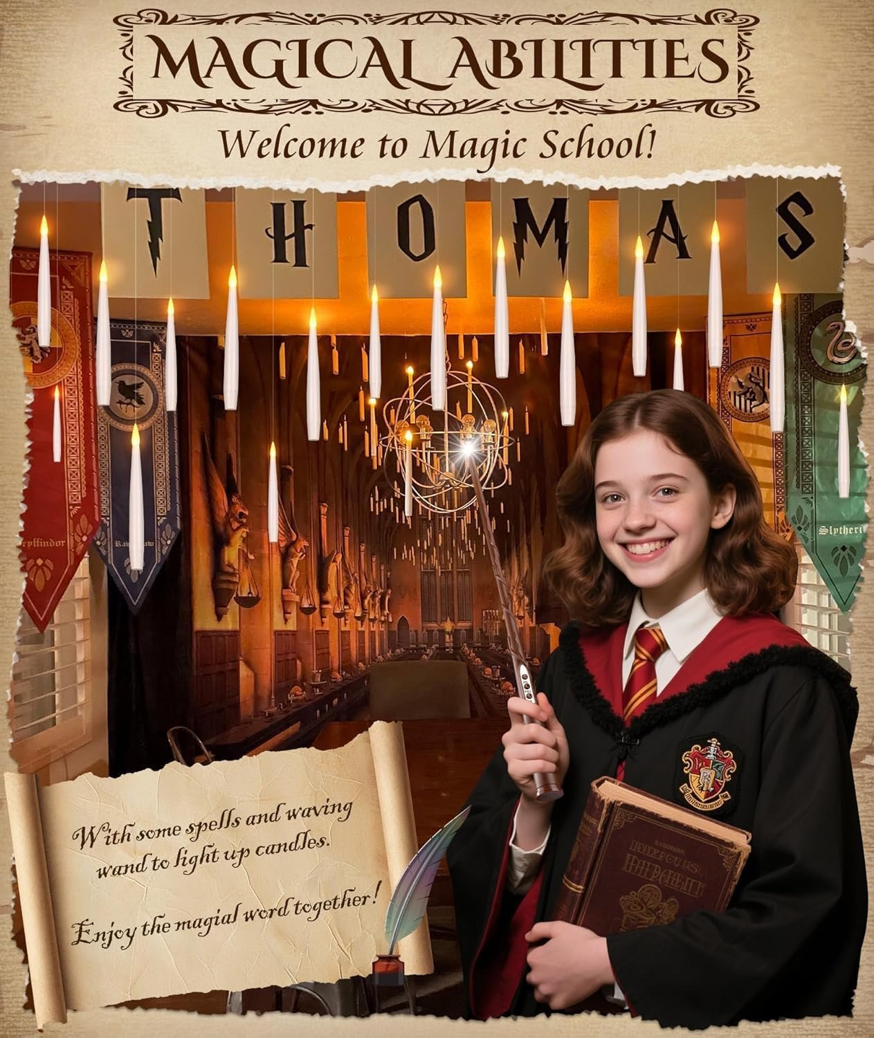 The included magic wand remote control allows you to easily turn the candles on and off, enhancing the mystical vibe while saving time. Whether you hang them from the ceiling to create a Hogwarts-inspired floating effect or place them around your living room, bedroom, or entryway, these candles instantly elevate your décor.